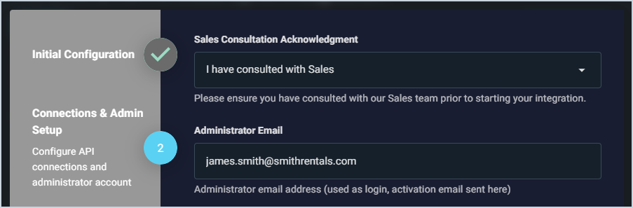 Select I have consulted with Sales from the dropdown to confirm that you've completed this required step. Then, enter the email address where your Acronis activation email was sent in the Administrator Email field.