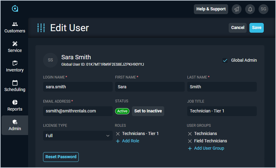 | 8 | Set to Inactive/Active | Click to set the user to inactive/active. See the Making Users Active/Inactive article for more information. |