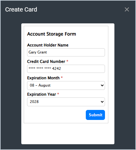 The Add Card button allows you to add a debit or credit card for future payments on the customer's account.