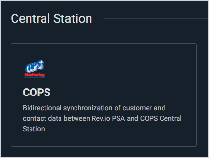 - Locate and select the COPS Integration in the Central Station section.