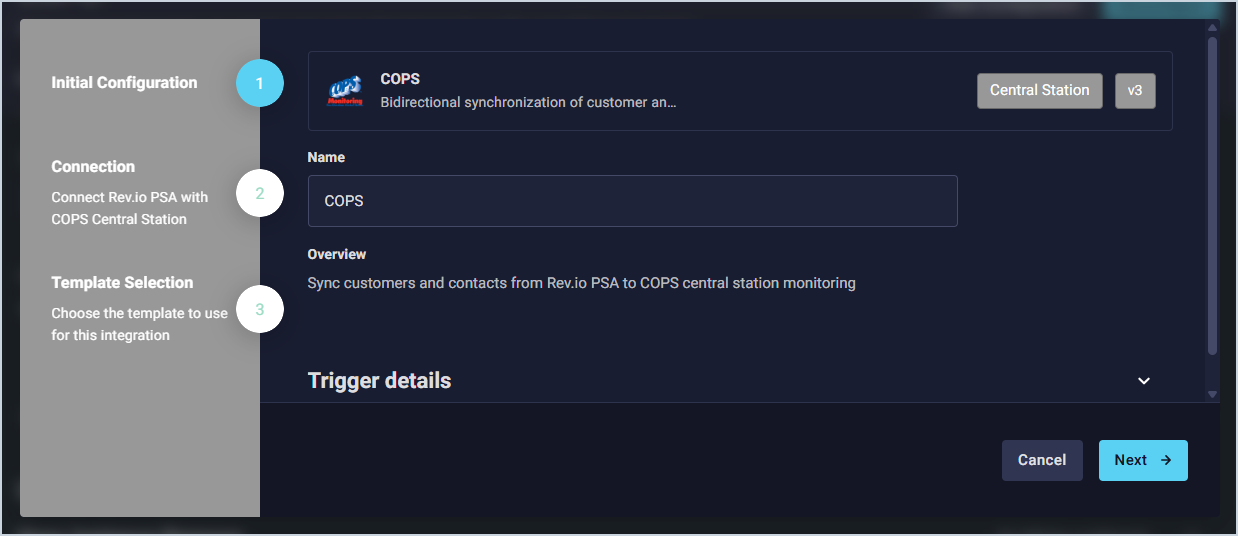 Complete the steps below to configure the COPS integration.