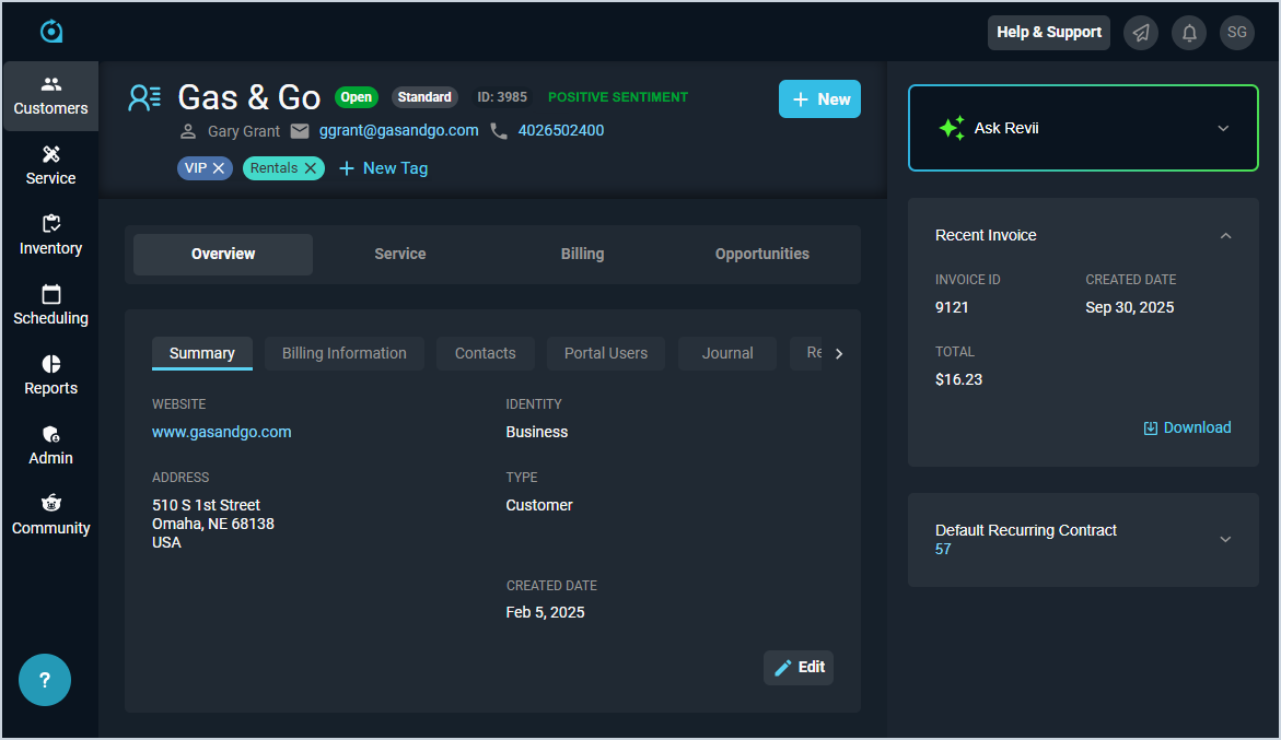 | Customers can be managed in both Rev.io PSA and Rev.io Billing. See the Managing Customers in Rev.io Billing for Use in Rev.io PSA article for more information. |