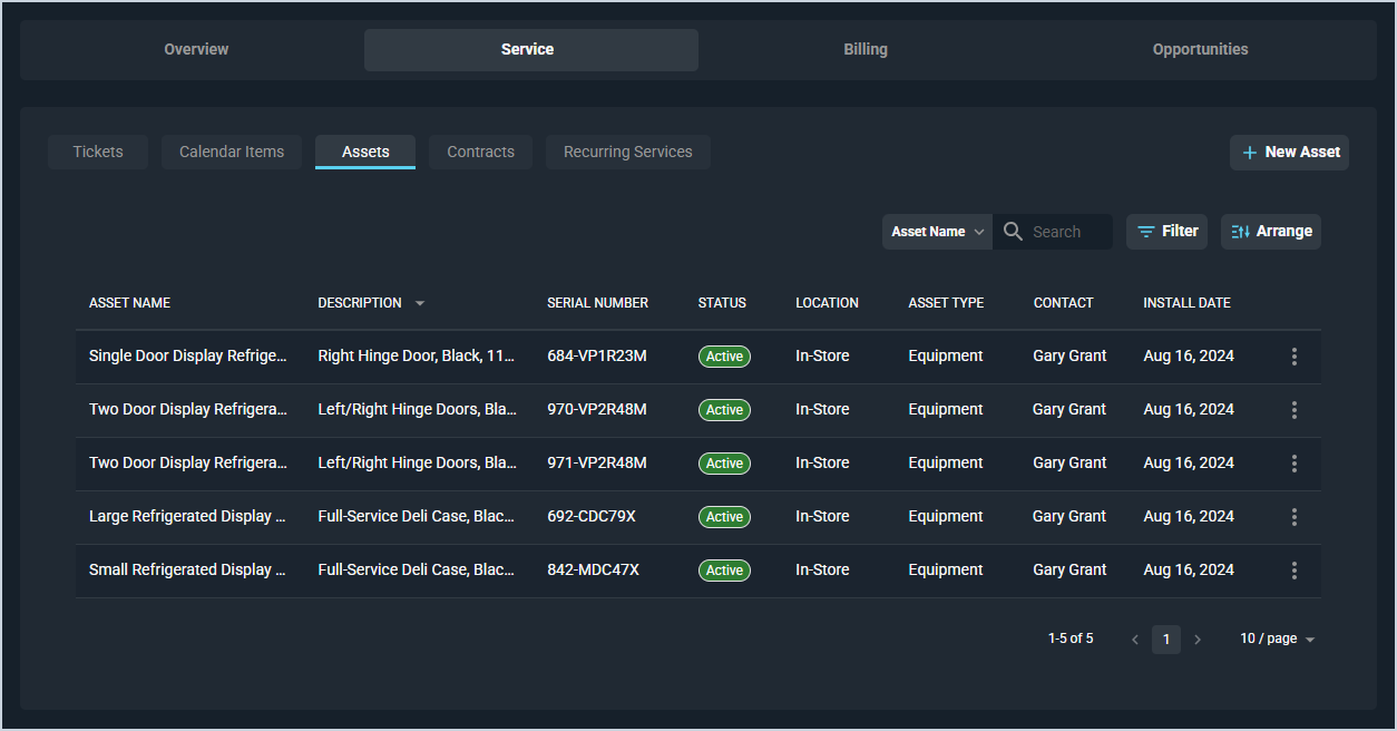 - View more details for the asset by clicking any row or the ellipsis at the end of the row and selecting View from the menu options. See the View Asset Details article for more information.