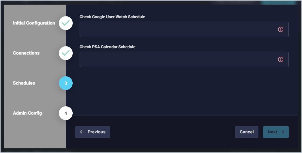 - Click in the Check Google User Watch Schedule field to set how often you want to sync the users' Google calendars.