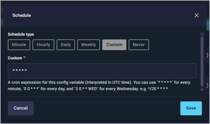 - The schedule defaults to ***** (every minute), but you can adjust the sync schedule to your preference. Click the Save button.