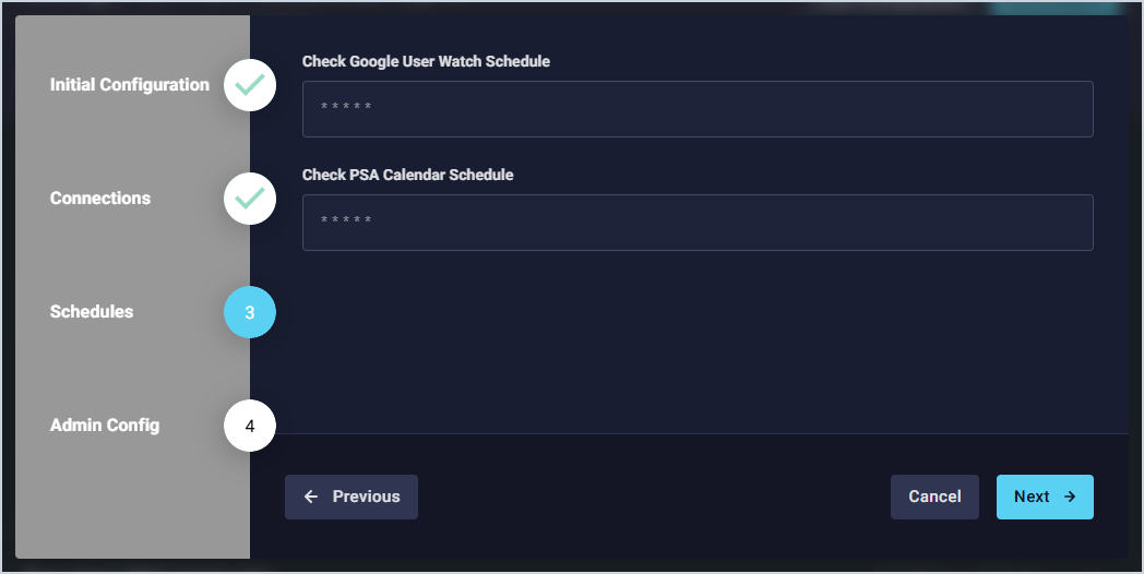 - Click in the Check PSA Calendar Schedule field to set how often you want to sync the users' Rev.io PSA calendars.