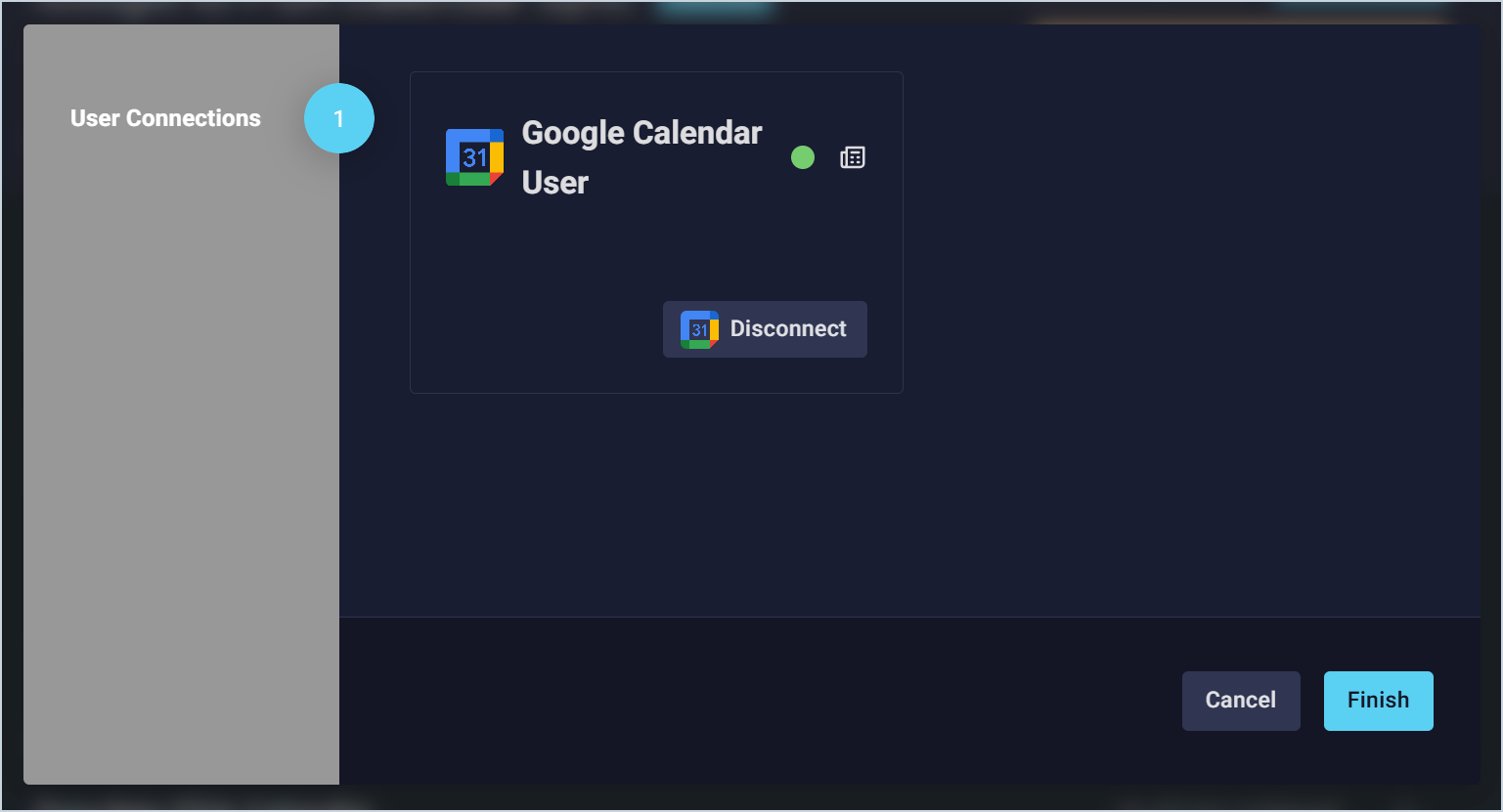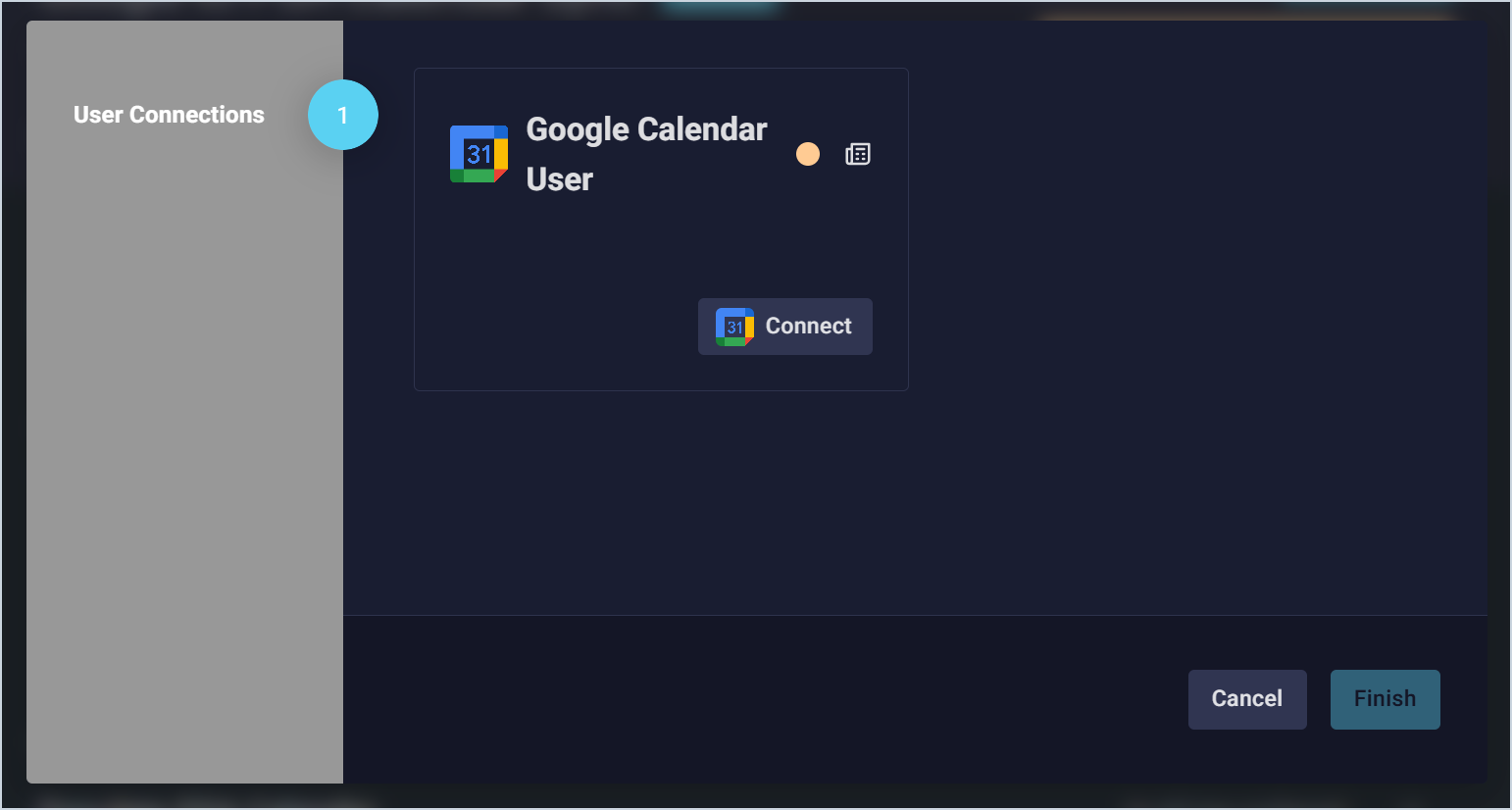 - In the Google Calendar User section, click the Connect button. You will be redirected to Google to login with your credentials.