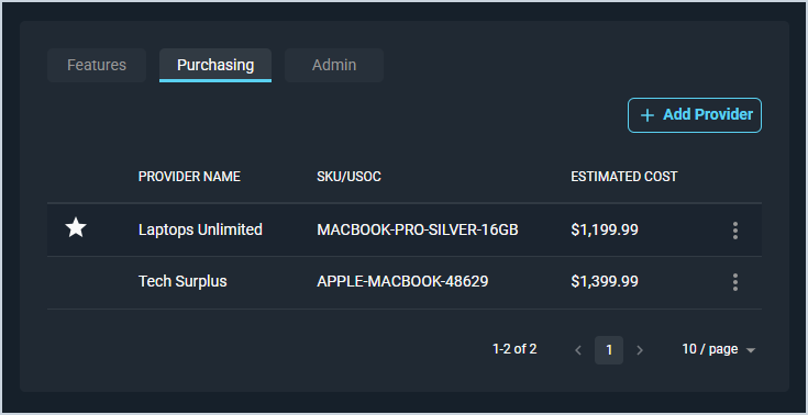 - Edit the provider by clicking the ellipsis at the end of the row and selecting Edit from the menu options. See the Product Details: Purchasing Tab - Add/Edit Providers article for more information.