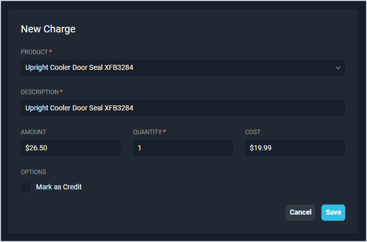 | 6 | Mark as Credit | Click to credit the product to the customer account instead of charging it. |