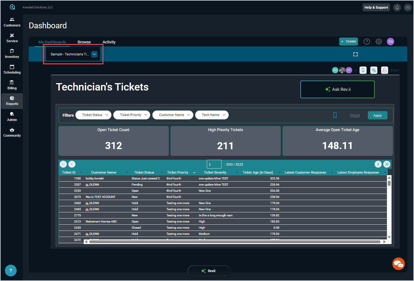 The Reports Dashboard allows you to view, create, and save various customized dashboards and reports using our integration with Yellowfin. We've developed several standardized dashboards that you can use to unlock insights from your data and address your business needs. Additionally, you can create custom reports and dashboards with ease using our innovative Ask Rev.ii tool, which harnesses AI to transform your questions or statements into dynamic visuals that you can incorporate into your dashboards.