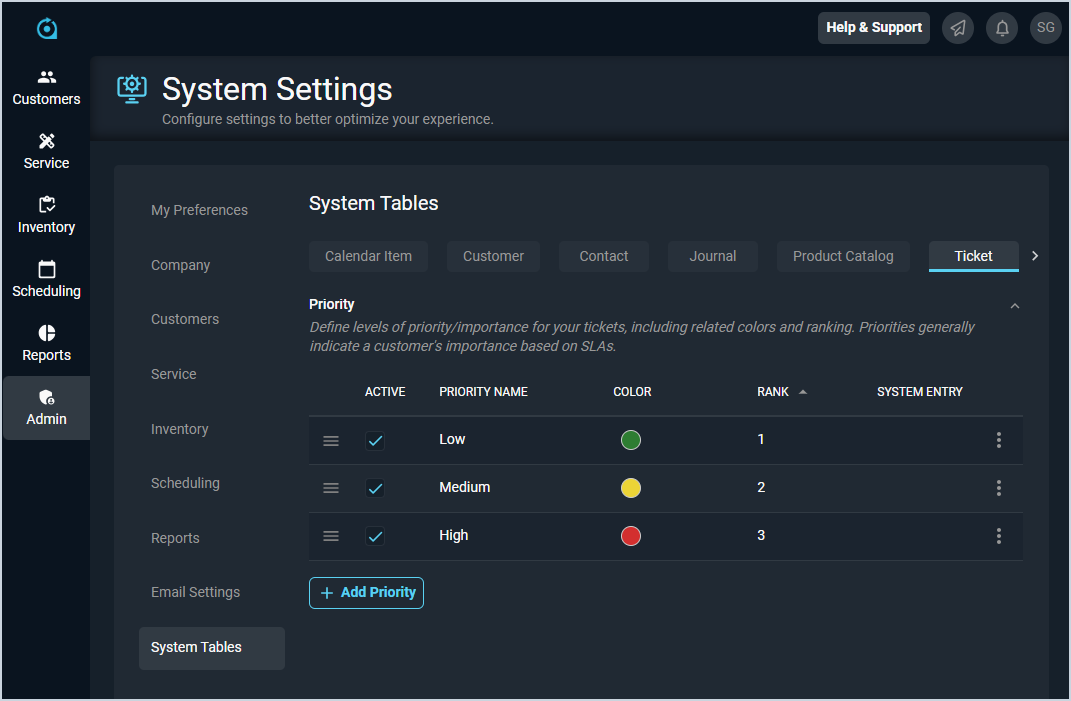 | 5 | System Entry | A checkmark indicates that the priority is a system entry and cannot be modified. |