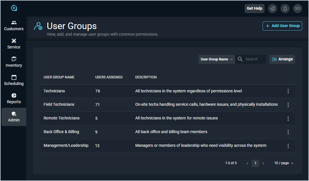 - Add a new user group and assign roles/users to it by clicking Add User Group at the top of the screen. See the Add/Edit User Groups article for more information.