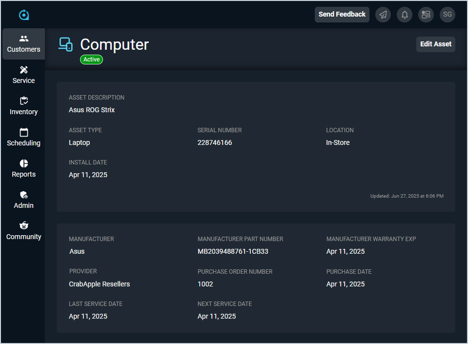 - Edit the asset by clicking the Edit Asset button and making your desired changes. See the Add/Edit Assets article for more information.
