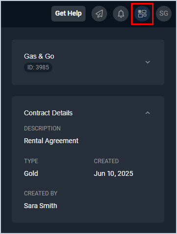 The Stage panel on the right side of the Contract Details screen allows you to view additional details for the contract.