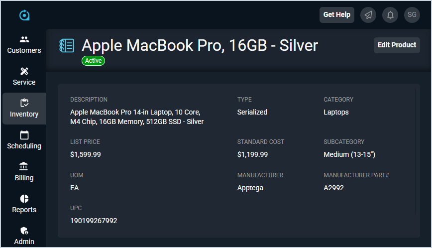 - Edit the product by clicking the Edit Product button and making your desired changes. See the Add/Edit Products article for more information.