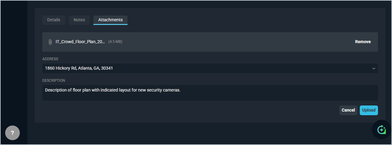 The Attachments tab displays all files associated with the quote and allows you to upload new ones.