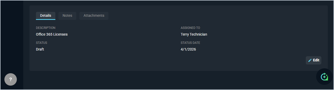 - Edit the quote details by clicking the Edit button at the bottom right of the Details tab.