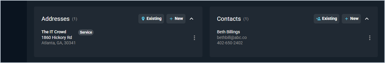 - Add an existing address or contact from the customer record by clicking the Existing button.