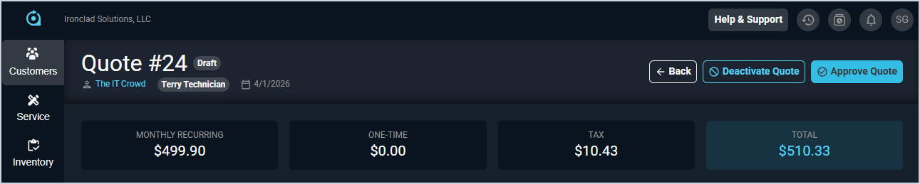 - Deactivate the quote by clicking the Deactivate Quote button.