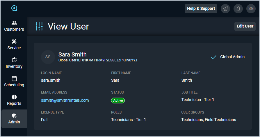 | 2 | Global Administrator | The Global Administrator label and a checkmark display if the user is a global administrator. See the Managing Global Administrators article for more information. |