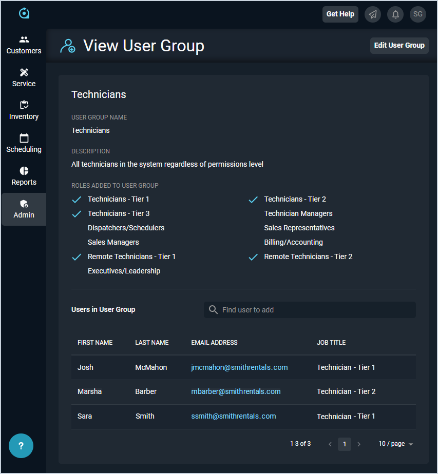 - Edit the user group by clicking the Edit User Group button at the top of the screen. See the Add/Edit User Groups article for more information.